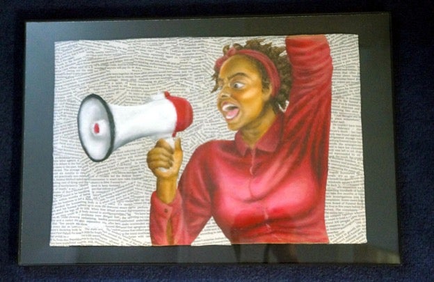 Incoming freshmen tackled these difficult topics as part of the College’s “convocation conversations” ahead of the fall semester. Tasked with creating a visual representation of a character’s thinking or feeling from a particular moment in the book, students produced a vivid array of images, some of which are on display in Addlestone Library.