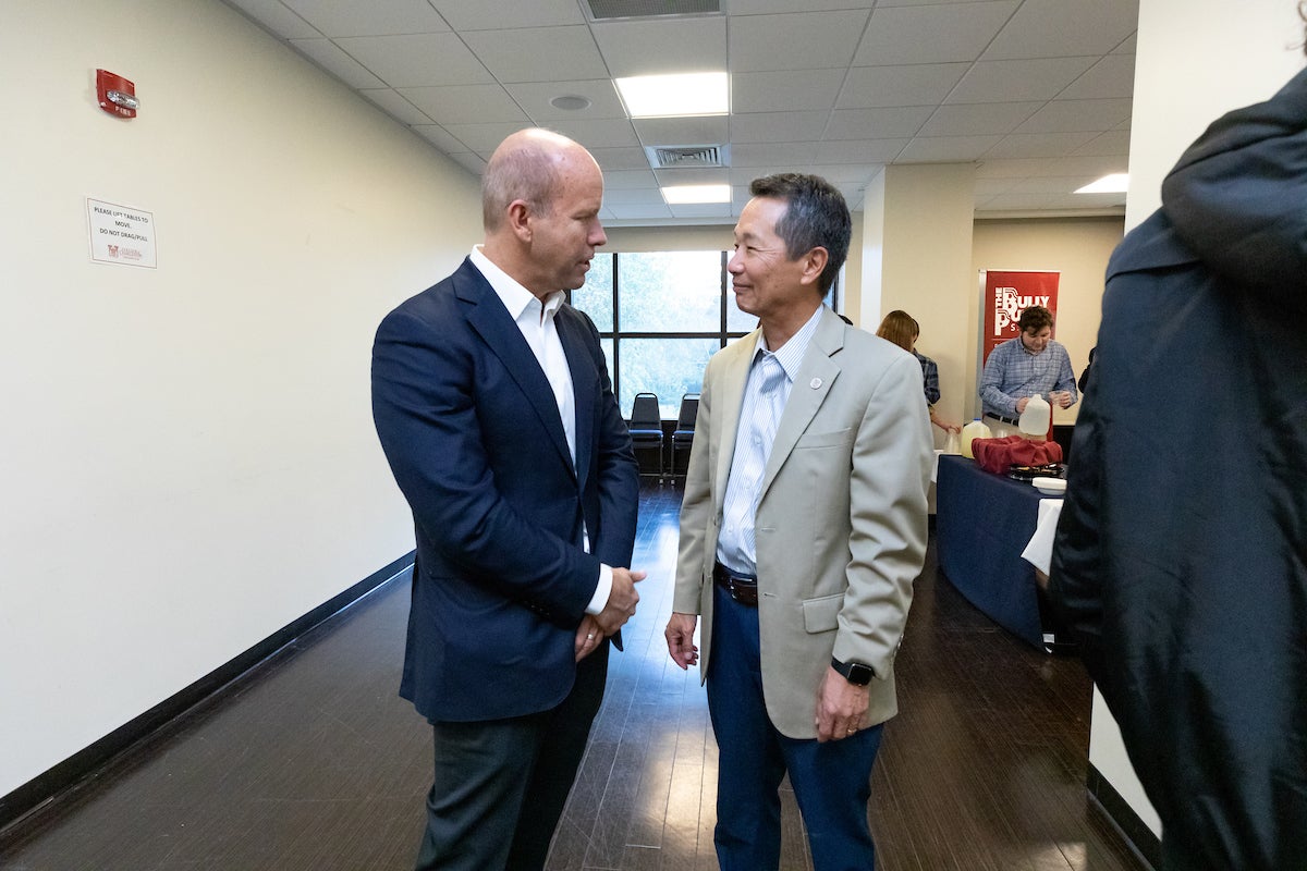 Ruth-McSwain says the candidates are not the only ones to benefit, though. She individually works with each campaign to make sure that there is a student engagement component included in the candidate’s visit. That engagement may be in the form of a meet-and-greet with students, a small student panel after a town hall meeting or scheduling a student media availability with the candidate. Additionally, a total of 26 students participated as active members of the Bully Pulpit team this year, working as event runners and signing in attendees, among other duties.